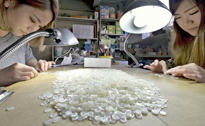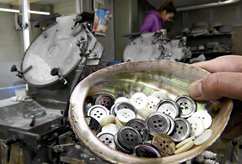 Clothing manufacturer Maker's Shirt Kamakura based in Kamakura, Kanagawa Prefecture, uses the town's shell buttons for about 60% of its products. They are relatively expensive compared to those produced in China, but the sizes and hole placements are uniform, so they make for more beautiful finished products.