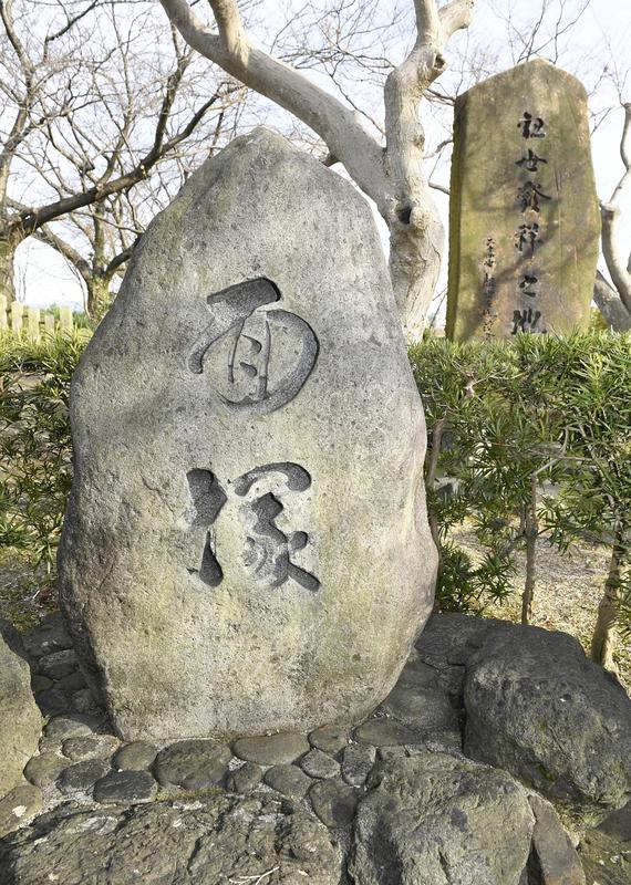 In the town, folklore exists about an Okina (elderly man) noh mask that fell from the sky. In 1936, stone monuments engraved with "Menzuka (the mound of mask)" and "Kanze Hassho no Chi (the birthplace of Kanze)" were built. They were relocated to their current site in 1967.