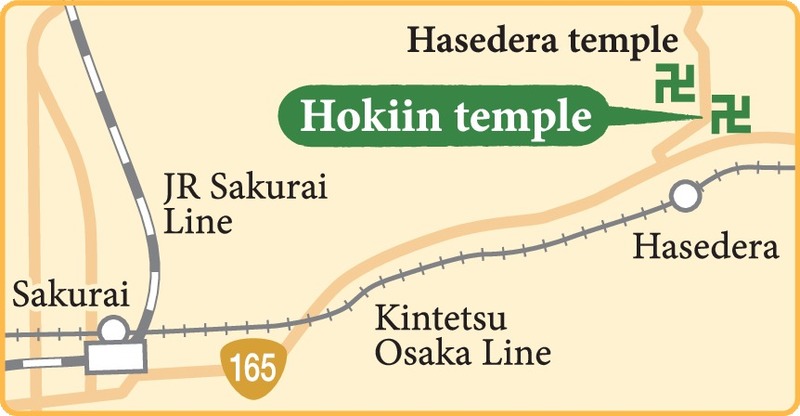 Hokiin temple is about 10 minutes on foot from Kintetsu Hasedera Station. The temple is open to visitors free of charge from 8:30 a.m. to 5 p.m. Hasedera temple is about a three-minute walk from Hokiin. For Hokiin: (0744) 47 8032. For Hasedera: (0744) 47-7001.