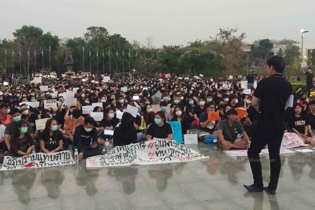 About 1,000 students of Naresuan University in Phitsanulok rallied at the statue of King Naresuan, calling for democracy, on Sunday evening.