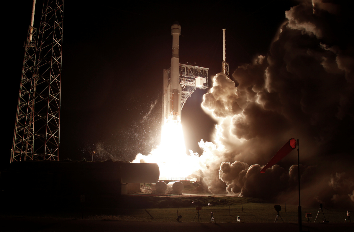 The spacecraft, a cone-shaped pod with seats for seven astronauts, lifted off from Cape Canaveral before dawn on Friday atop an Atlas V rocket supplied by Boeing-Lockheed Martin Corp's <LMT.N> United Launch Alliance.