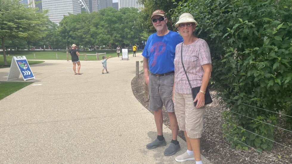 “We’re leaving tomorrow. That was the last thing we were going to see,” said Debbie Roden-Reynolds, 71, as the couple strolled through Maggie Daley Park on the way back to their room at the DoubleTree Hilton.