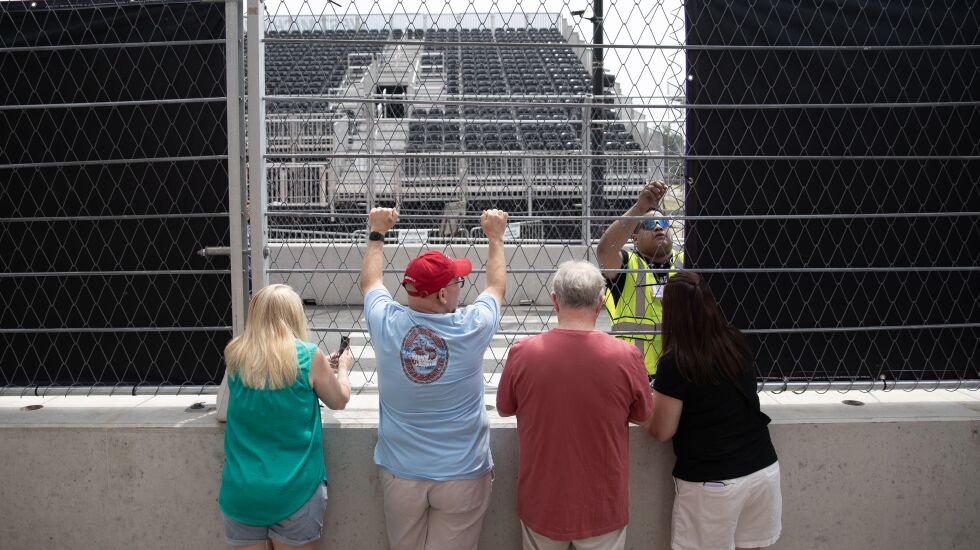 Still, he admired the track through a gap in the fence along Michigan Avenue, explaining to his companions how the drivers and their teams were walking through the course to assess it.