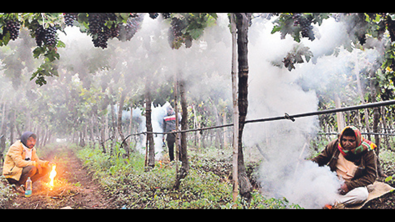 The grape farmers have started taking measures like lighting bonfires and using drip irrigation to water the vineyards in the wee hours to maintain the temperature.