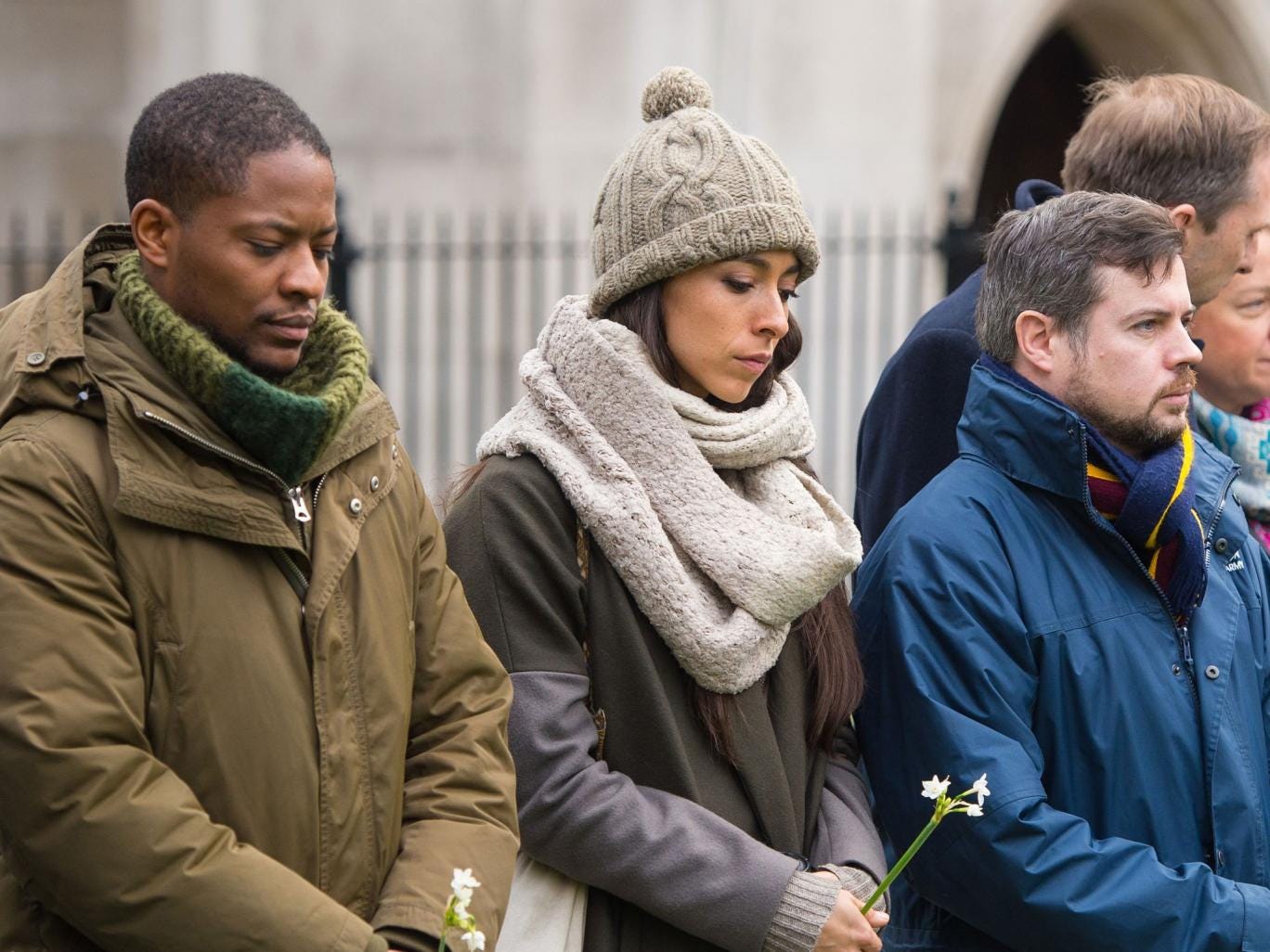 Campaigners, politicians and celebrities listened to Christian, Jewish and Muslim leaders and laid white flowers as a tribute to the dead.
