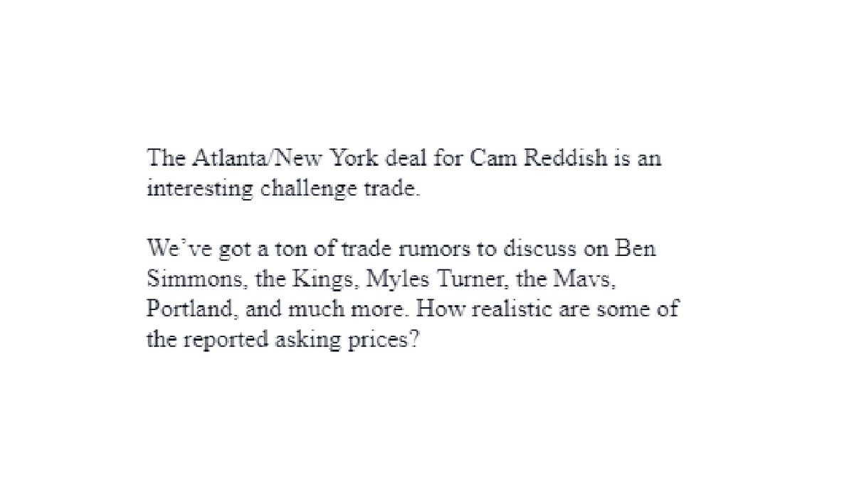 Come for the NBA banter, stay for Jason channeling Littlefinger-as-Leon Rose, making the Cam Reddish trade.