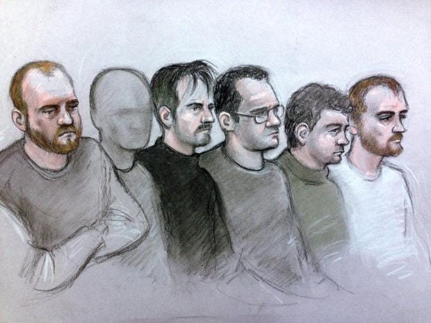 He has appeared with five other men at London's Old Bailey, where the Honourable Mr Justice Jay set their trial date for 11 June.
