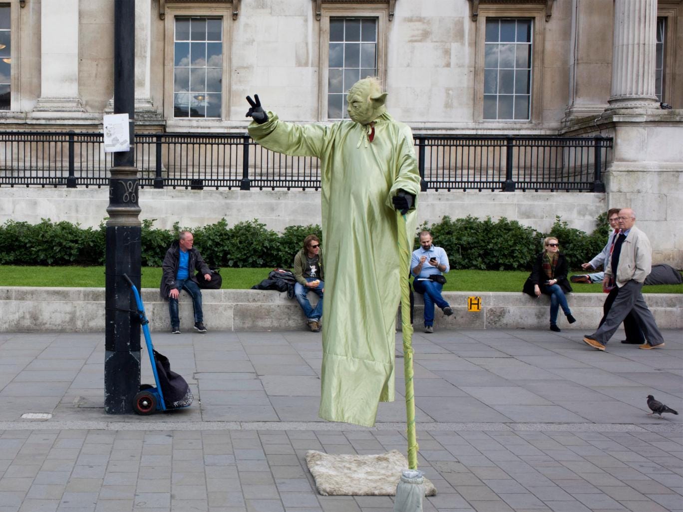 As many as 30 street performers, several of them dressed as Yoda from Star Wars, battle for places on the terrace every day. Currently unlicensed, the council is talking about bringing in a voluntary licensing scheme.