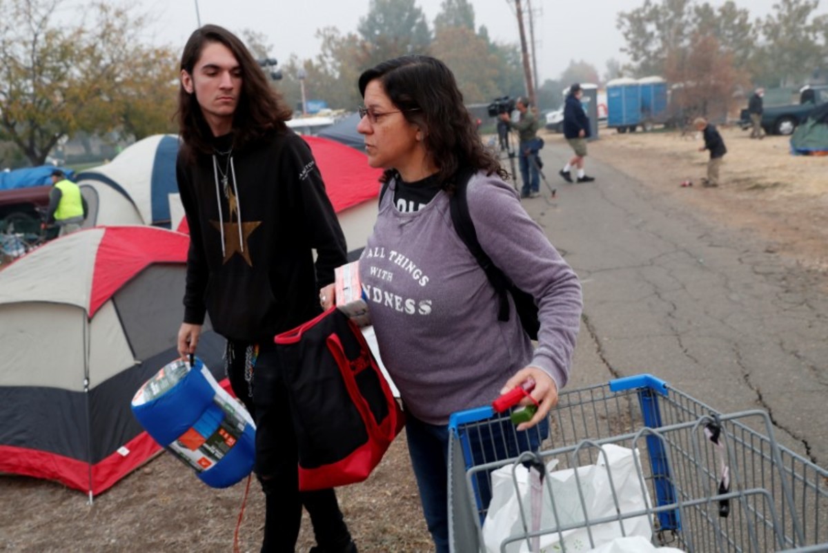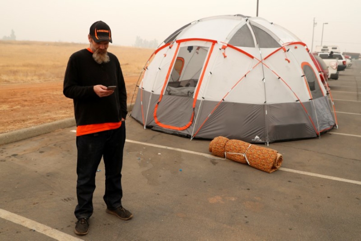 Many others found haven at an encampment that sprang up in the parking lot outside a still-open Walmart store in Paradise, where dozens of evacuees pitched tents or slept in their cars. Part of the lot was roped off as a distribution center for clothes, food and coffee. Portable toilets were also brought in.
