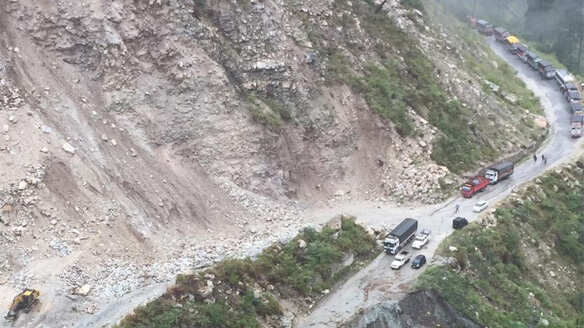 SHIMLA: The national highway on Monday morning was blocked near Jhakri in the Rampur area of Shimla district following heavy rainfall.