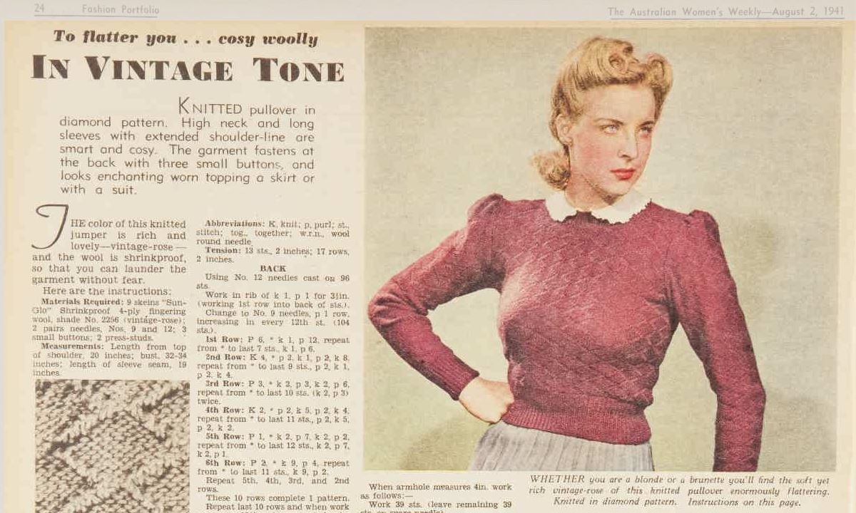 The result has been a book, Vintage Knits, recently released by NLA publishing, which has 25 knitting patterns from the 1930s, '40s and '50s as well as stories of the history of knitting.