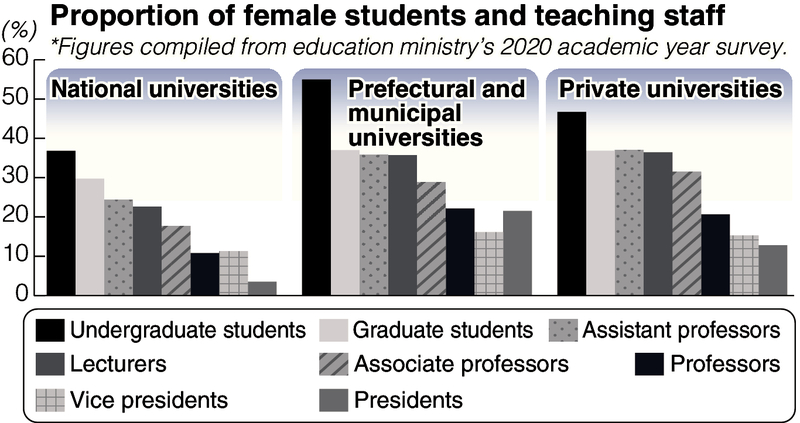 OSAKA -- National universities in Japan are ramping up efforts to increase their proportion of female teaching staff and students.