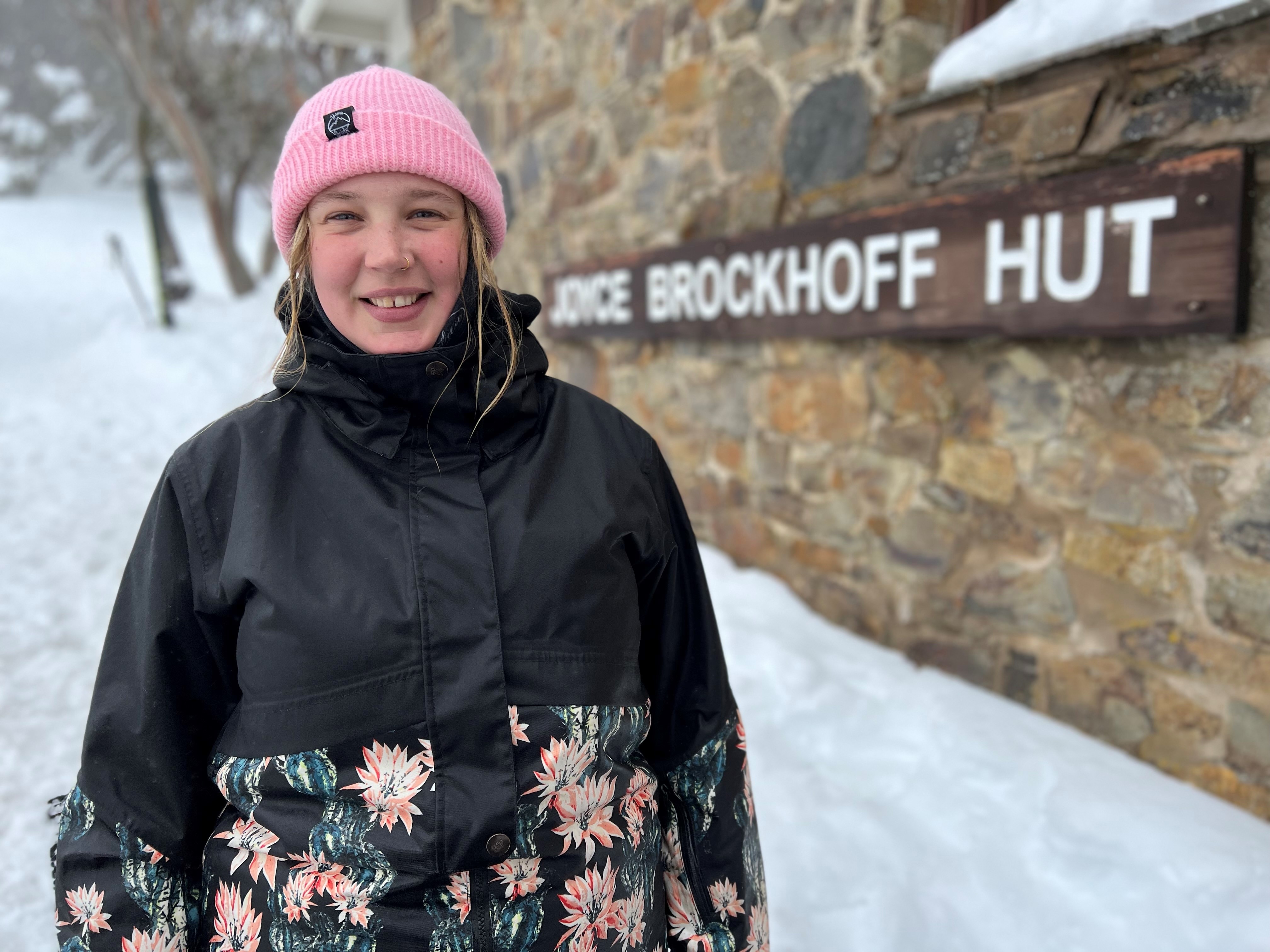 After a 10-minute drive, she clicks on skis and slides down the hill for a day of making hot coffees and serving cold beers at Hoff Hut, overlooking Mt Hotham’s premier ski run.