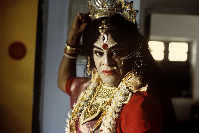 Performing the Goddess, or the Chapal Bhaduri series, is his most famous. It also made a living legend of Chapal Bhaduri, the last female impersonator in Bengali jatra (street theatre), who performed under the name Chapal Rani. As actors such as Moon Moon Sen started performing in jatras in the ’70s, he fell into obscurity, till the only role he could find was playing Shitala Mata — the incarnation of Goddess Parvati that cures pox — in four-hour-long performances for 50 nights in a year.