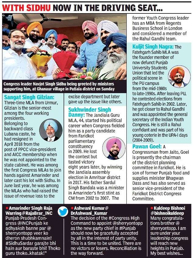 The four appointments were made to maintain social balance as various communities and caste groups have been seeking more representation in the party’s Punjab unit. Gilzian is an OBC, Danny is a Dalit, Nagra Jat Sikh and Goel a Hindu. None of the working presidents belong to the CM’s camp.