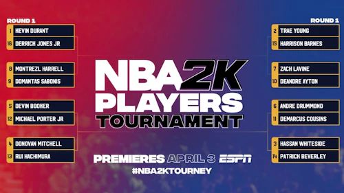 Thankfully, even more basketball content is on the way during this stoppage of play. ESPN will air an NBA 2K20 tournament featuring 16 players from the league. The single-elimination contest begins Friday, April 3, and will run through April 11, with games televised on ESPN and ESPN 2. Kevin Durant and Trae Young have the top two seeds, as determined by the participating players' ratings within the game. The winner will select a charity to receive a $100,000 donation in their name and in support of coronavirus relief.