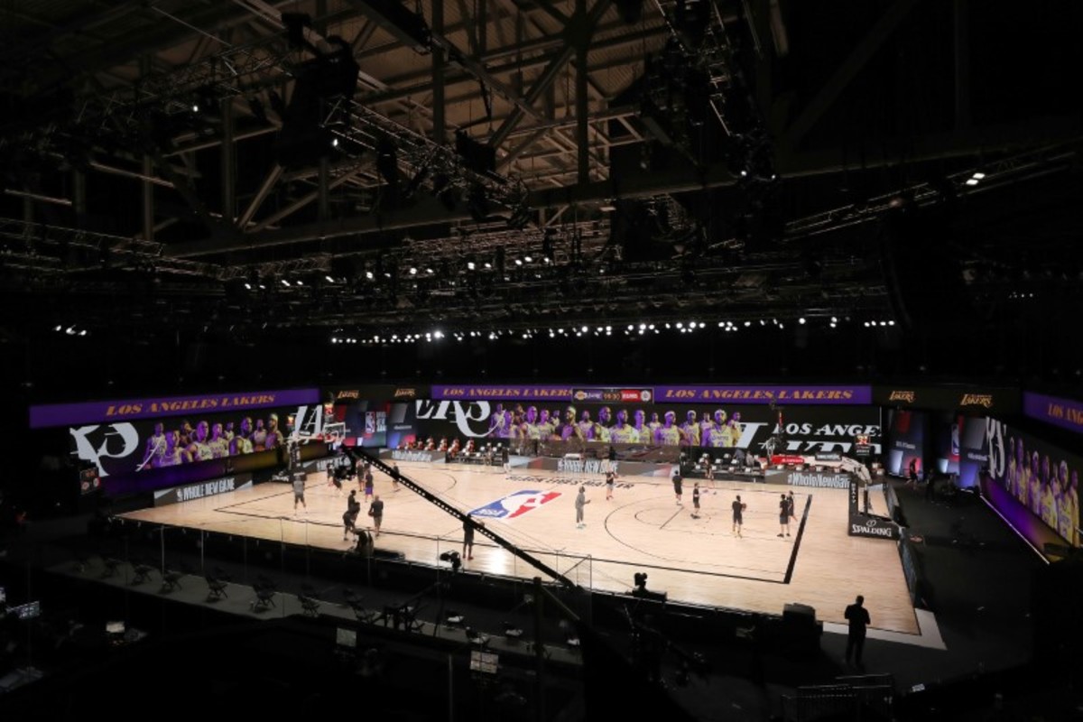 To prevent outbreaks among NBA players, the league restarted its season on Thursday with all games being played at a Walt Disney World sports complex in Orlando, Florida. Players are isolated and regularly tested for coronavirus, and games are played without spectators. Producers filled the arena with digitally created fans and artificial cheers.