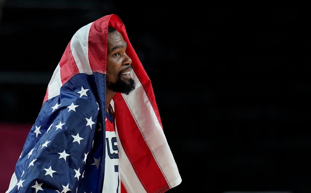 On the penultimate day of the Tokyo Olympics, NBC Universal got the kind of picture that it pays for: Kevin Durant draped in the American flag, exulting in the U.S. men's basketball team's gold medal victory over France