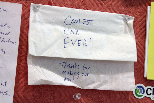 People pull alongside and take pictures. Or last week, on the way to a cross-country meet, stick their hands out a passing car's window, thumbs up.