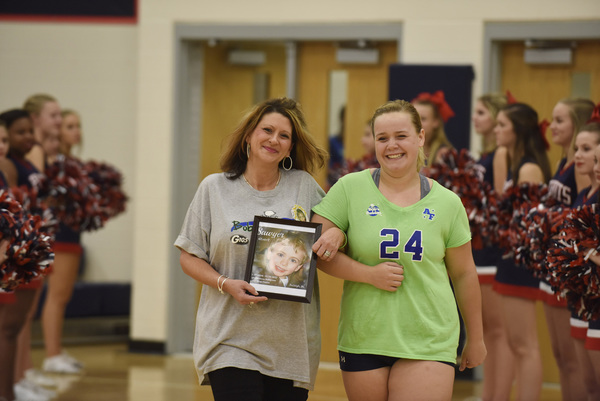 The night's most valuable cheers, though, came during introductions. Instead of announcing starting lineups, families of children with brain tumors were introduced. They were escorted on the court by Apex Friendship and Holly Springs players.