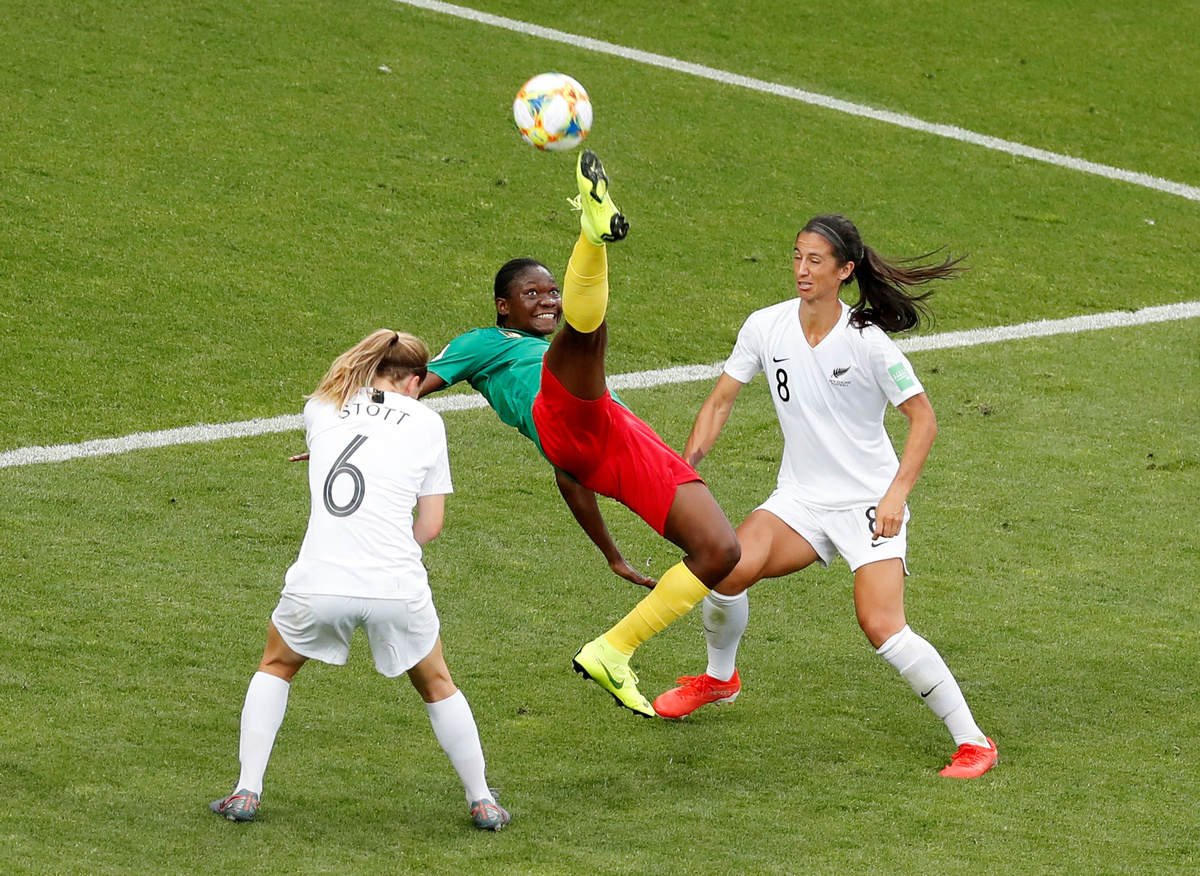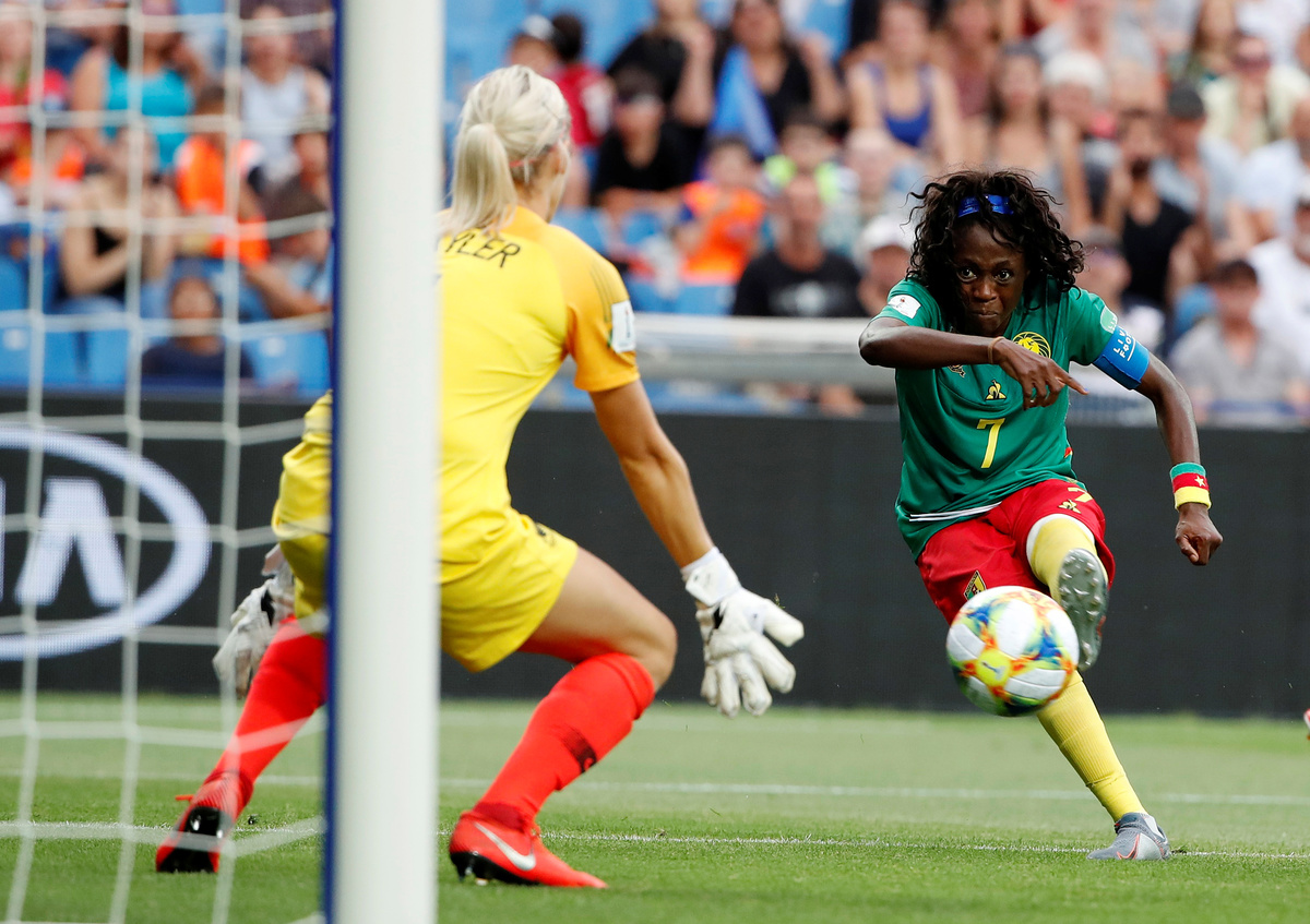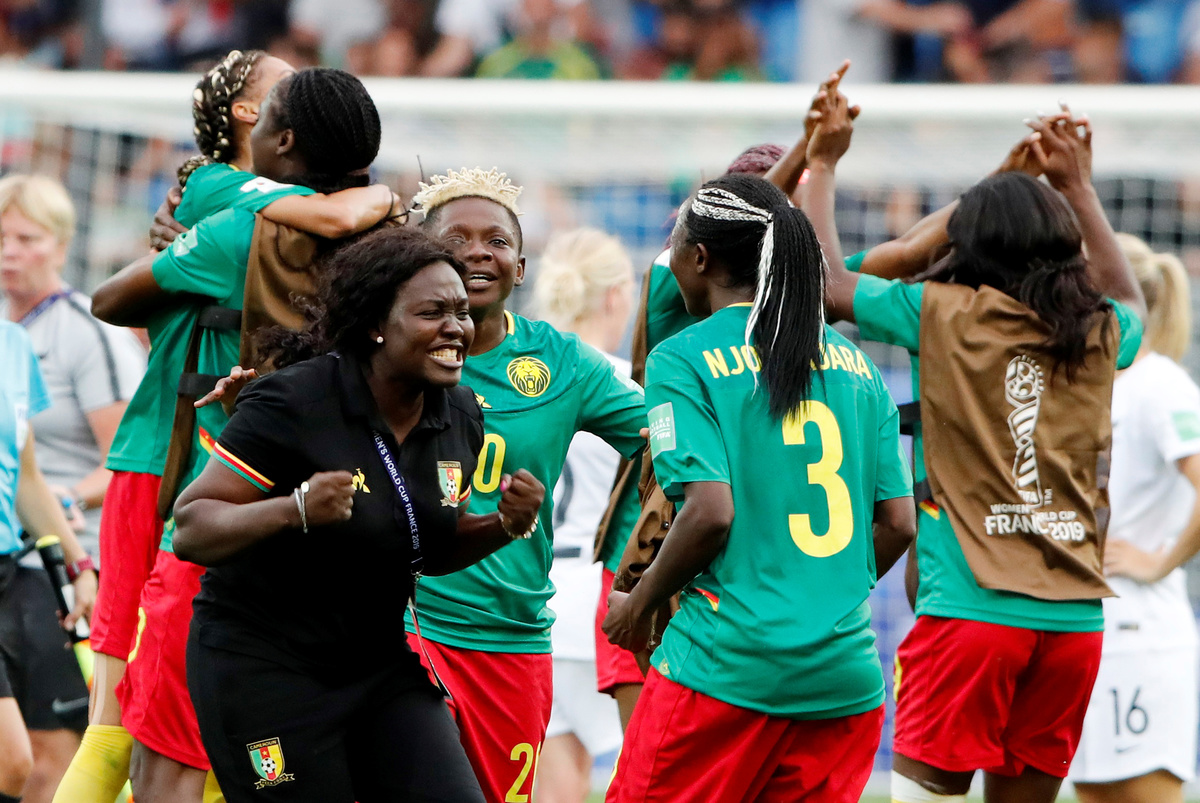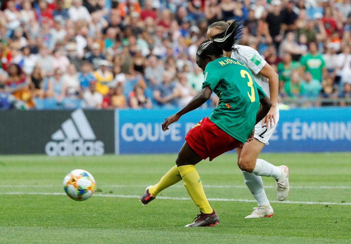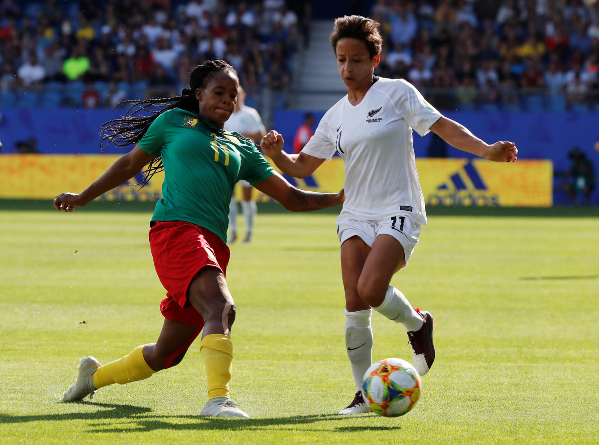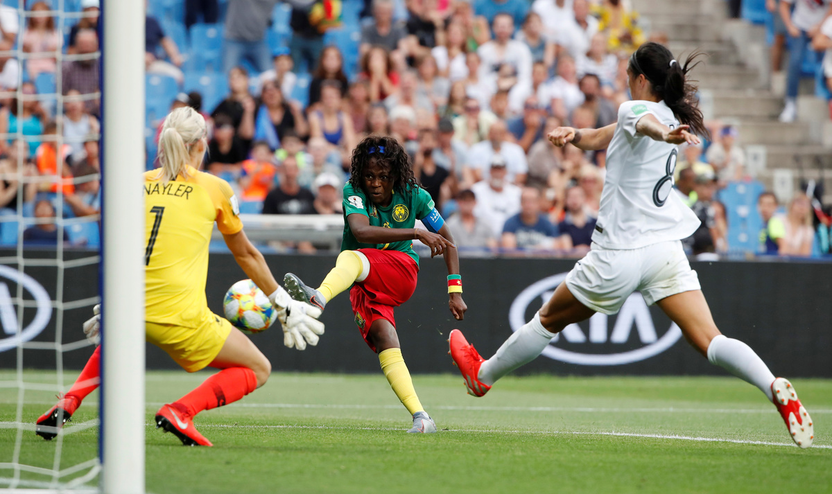 Soccer Football - Women's World Cup - Group E - Cameroon v New Zealand - Stade de La Mosson, Montpellier, France - June 20, 2019 Cameroon's Gabrielle Aboudi Onguene shoots at goal REUTERS/Jean-Paul PelissierSoccer Football - Women's World Cup - Group E - Cameroon v New Zealand - Stade de La Mosson, Montpellier, France - June 20, 2019 Cameroon's Gabrielle Aboudi Onguene shoots at goal REUTERS/Jean-Paul PelissierSoccer Football - Women's World Cup - Group E - Cameroon v New Zealand - Stade de La Mosson, Montpellier, France - June 20, 2019 Cameroon's Aurelle Awona in action with New Zealand's Sarah Gregorius REUTERS/Jean-Paul PelissierSoccer Football - Women's World Cup - Group E - Cameroon v New Zealand - Stade de La Mosson, Montpellier, France - June 20, 2019. New Zealand's Hannah Wilkinson celebrates after Cameroon's Aurelle Awona scored an own goal and the first for New Zealand. REUTERS/Eric GaillardSoccer Football - Women's World Cup - Group E - Cameroon v New Zealand - Stade de La Mosson, Montpellier, France - June 20, 2019 Cameroon's Ajara Nchout scores their second goal REUTERS/Jean-Paul PelissierSoccer Football - Women's World Cup - Group E - Cameroon v New Zealand - Stade de La Mosson, Montpellier, France - June 20, 2019 Cameroon celebrate winning the match REUTERS/Jean-Paul Pelissier