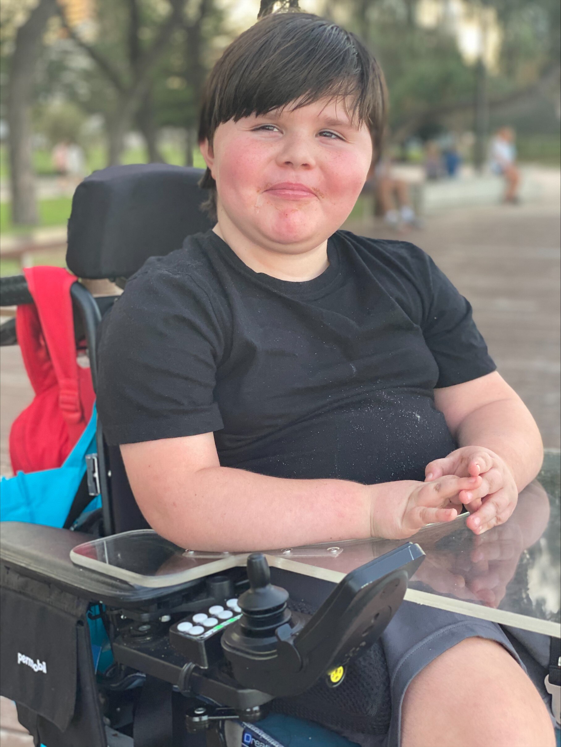 Nine-year-old Harrison Williams uses a wheelchair and has a rare genetic disorder called Duchenne muscular dystrophy.