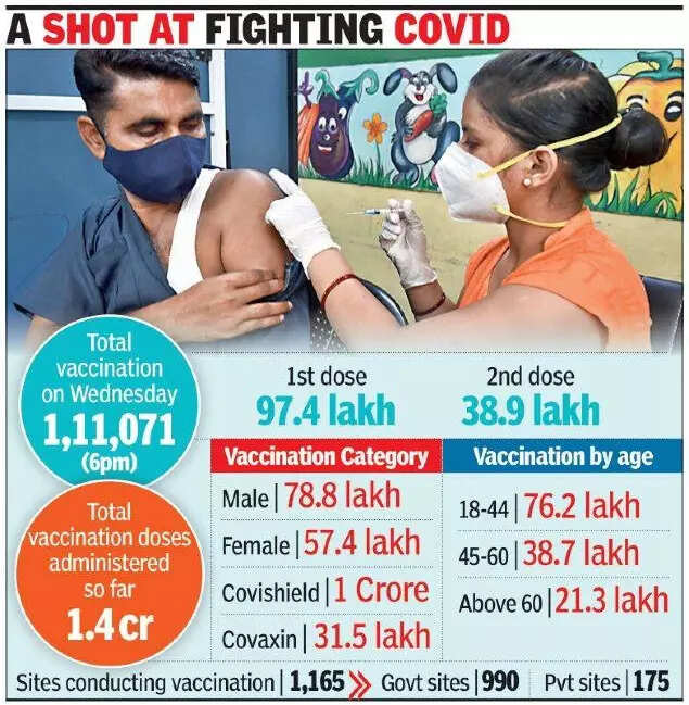 The count has also seen a upward trend after experts started urging people to get vaccinated to make the possible third Covid wave less lethal. On Wednesday, more than 1.12 lakh people got the jab till 7pm.