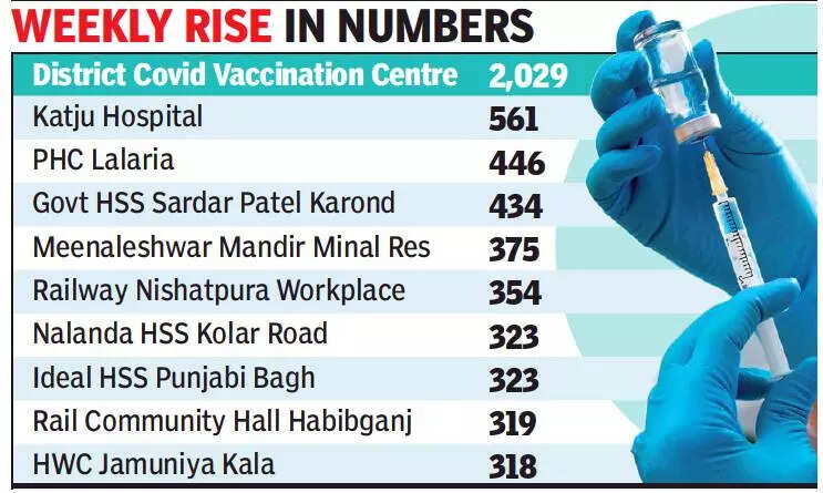 BHOPAL: Around 28,977 doses of Covid-19 vaccine were administered here on Saturday. For the current week, around 1.5 lakh doses have been administered in Bhopal, the second highest weekly average numbers since vaccination began on January 16.