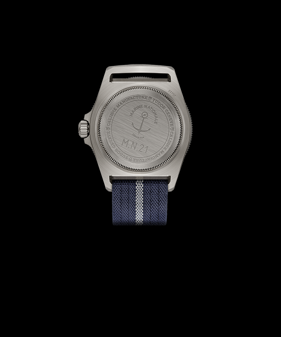 To highlight the watch's official character, its case back bears the logo of the Marine Nationale (French Navy) composed of an anchor topped with a sailor's hat, as well as a historically inspired engraving of "M.N.21" for Marine Nationale 2021.