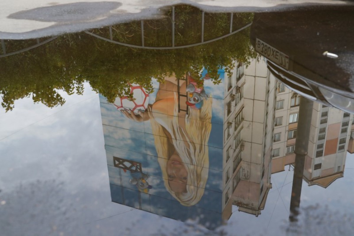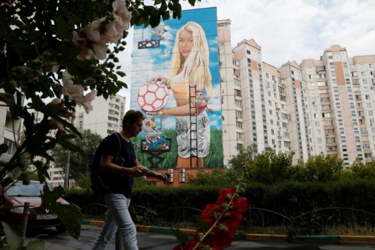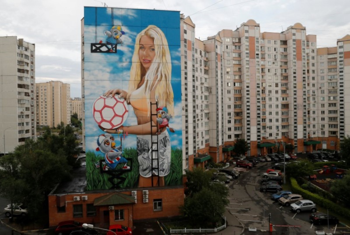The funding for the facade in Zhulebino district came from the Moscow city budget, Panteleev told Reuters. It is one of four World Cup murals co-sponsored by the city's public relations committee.