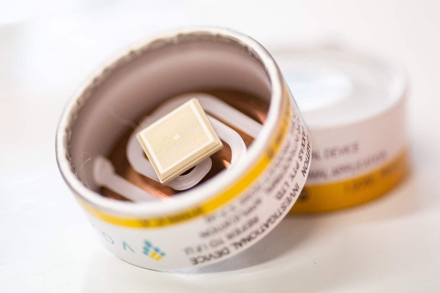 These tips have been coated with an experimental vaccine, and the patch is clicked on with an applicator that resembles a hockey puck. “It’s like you get a good flick on the skin,” said Muller.