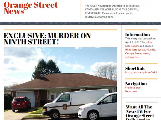 Hilde Kate Lysiak scooped the competition to break the story of a murder in her hometown of Selinsgrove, Pennsylvania, for her newspaper Orange Street News.