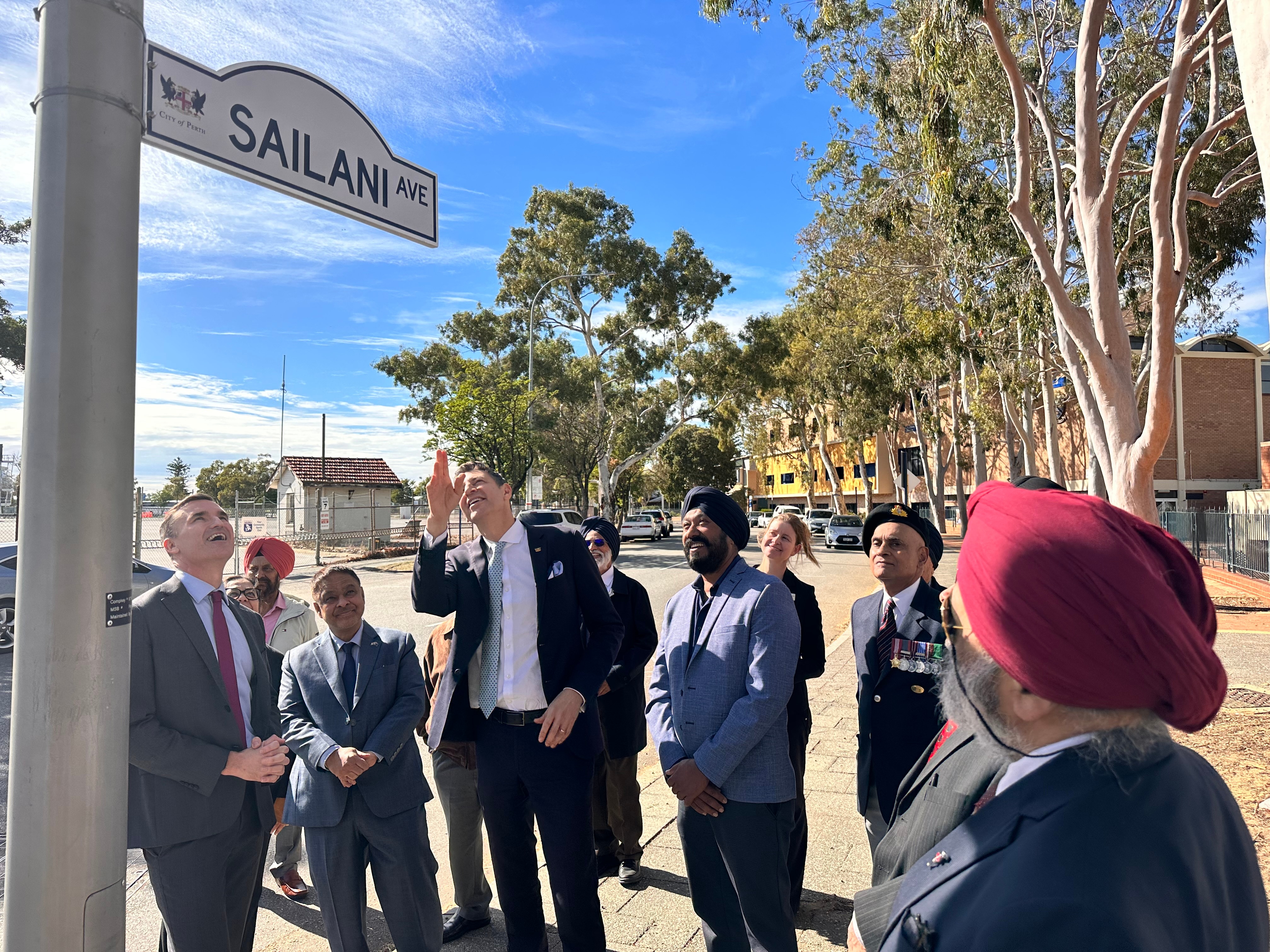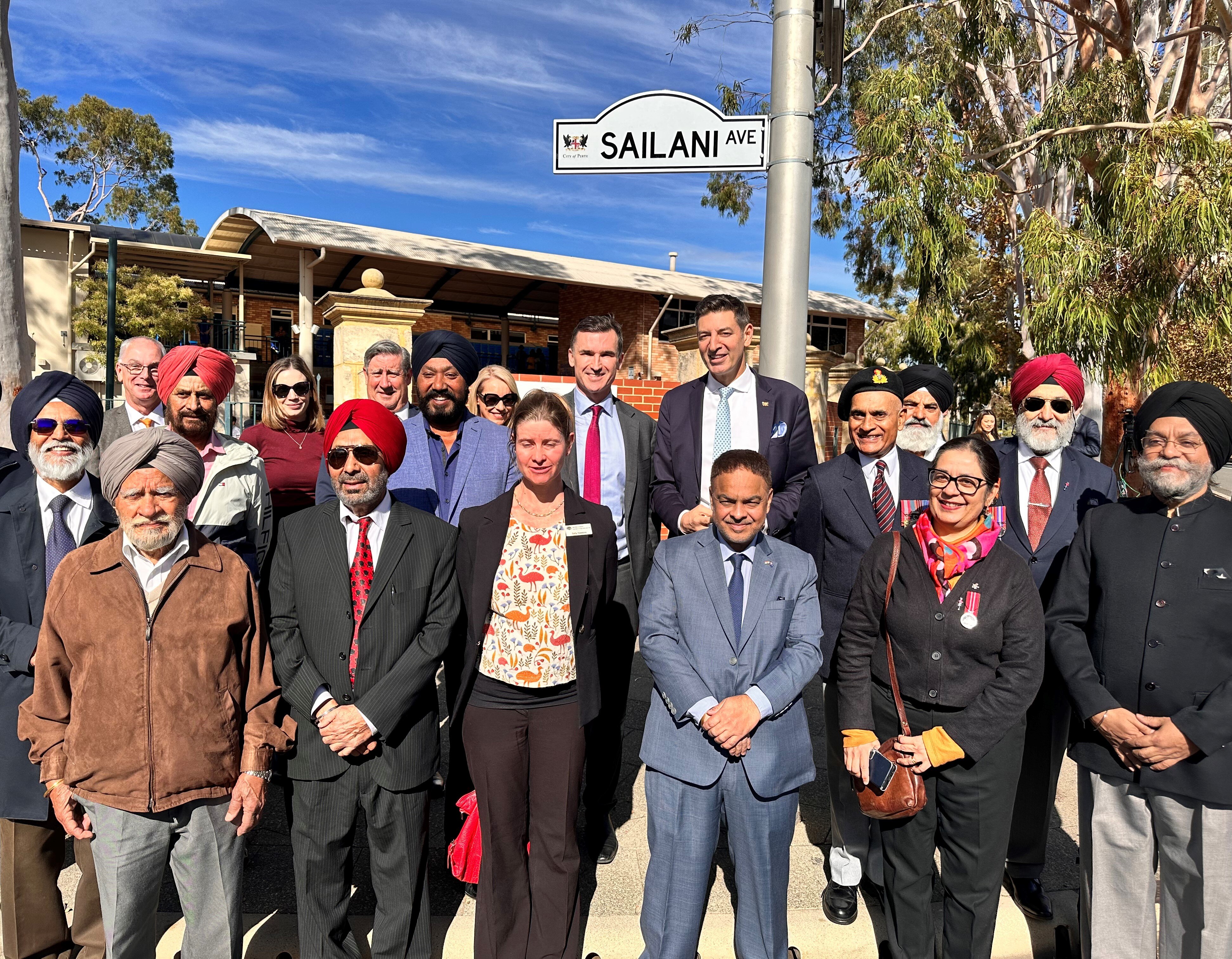 Members of Perth's Indian community, including veterans of the Indian Defence Forces and the Sikh History Association, came to honour Private Sailani, who was killed in action on the western front in 1917, and to admire the new street sign.