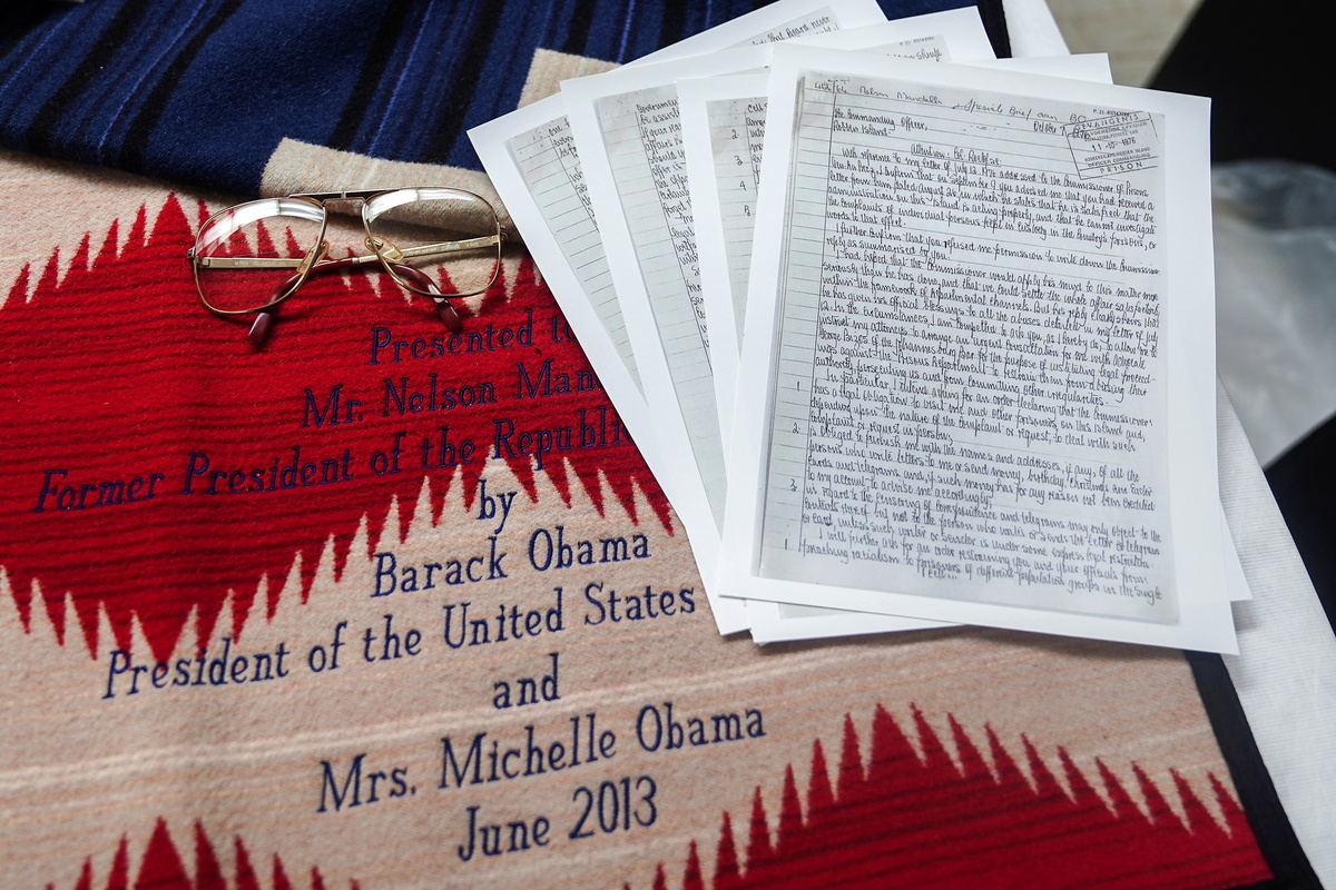 Gifts from former U.S. President Barack Obama and other heads of state, as well as Mandela's glasses, briefcases, and pants, are also on sale to fund the Nelson Mandela Freedom Garden in Qunu, South Africa where he is buried. He died in 2013 at age 95 at home in Johannesburg.