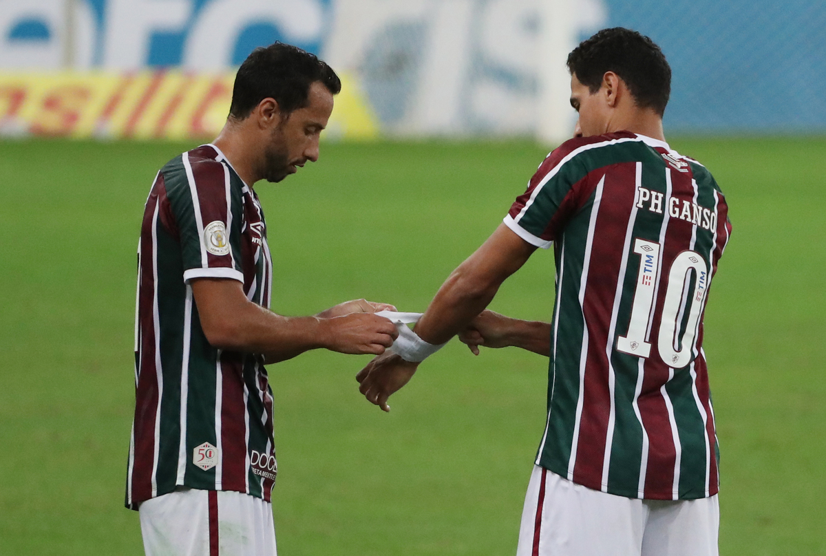 Soccer Football - Brasileiro Championship - Fluminense v Internacional - Maracana Stadium, Rio de Janeiro, Brazil - August 16, 2020 Fluminense's Ganso comes on as a substitute to replace Nene, following the resumption of play behind closed doors after the outbreak of the coronavirus disease (COVID-19) REUTERS/Sergio Moraes
