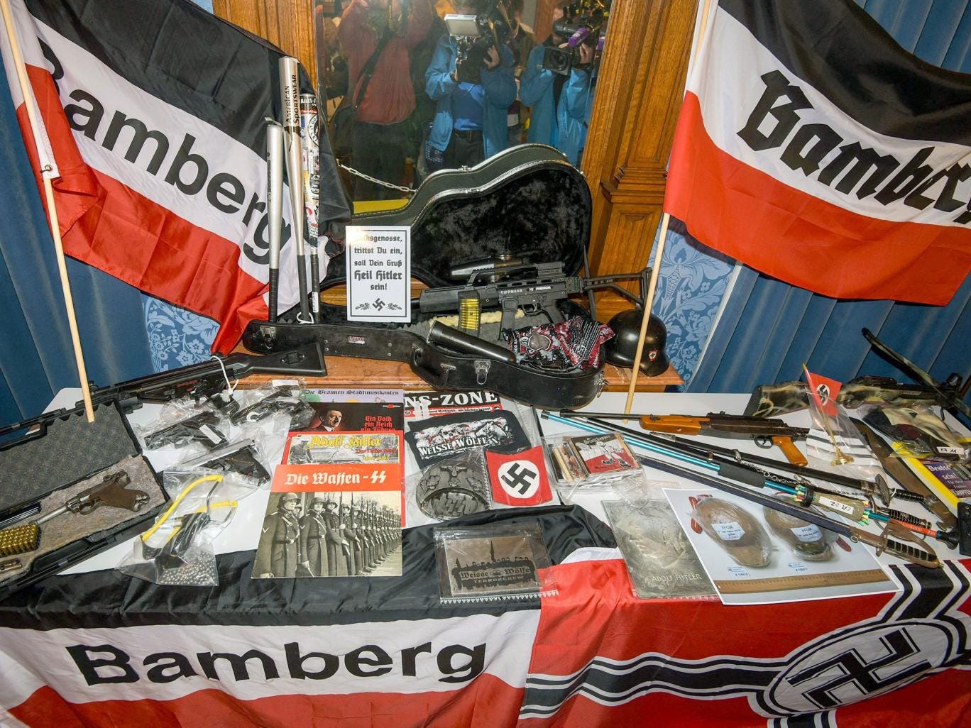Flags emblazoned with banned swastikas, Nazi magazines and memorabilia from the Third Reich were among the items found at the homes of suspected conspirators in Bavaria.