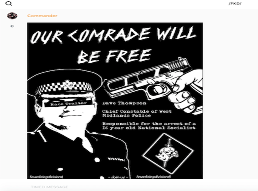 After he was arrested last year, FKD released a propaganda poster threatening West Midlands Police and depicting its chief constable with a gun held to his head.