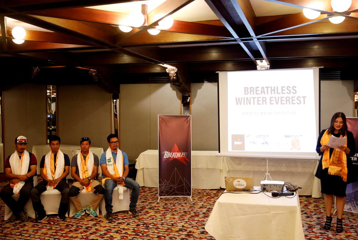 Four veteran Sherpa climbers left on Monday for Mount Everest on a mission to climb the world’s highest mountain in five days from the Nepali side, aiming to set a record for its shortest winter ascent in nearly three decades, hiking officials said.