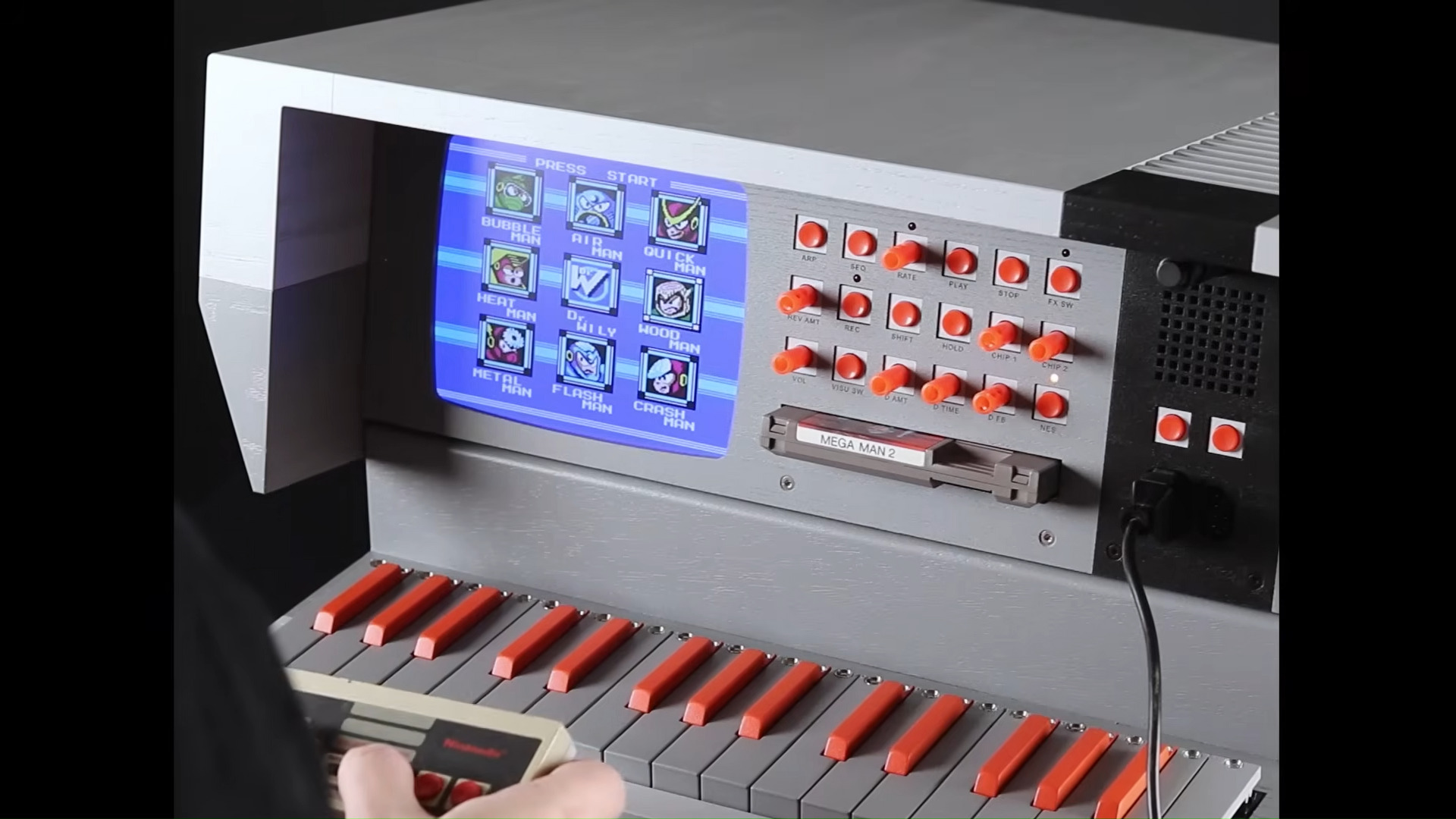 Above you can see the creator of the NES-SY2.0, Love Hultén, a self described provider of “tech, noise and craftporn from Sweden,” playing a selection of compositions on the device. A couple of short melodies later, Hultén flips NES-SY2.0 modes, plugs in a gamepad, and enjoys a session of Mega Man 2 on the built-in visualizer screen.