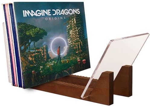 Don’t hide your vinyl records on a shelf — let this organizer hold them out for everybody to see. It’s large enough to hold up to 50 albums and features a solid wood base with clear acrylic stoppers on either end. You also have the choice of eight different wood tones.