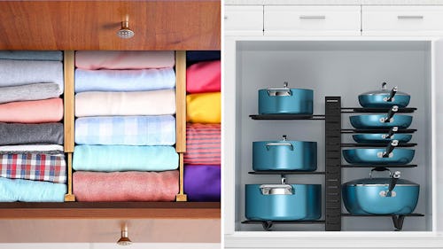 From genius lid organizers to layered utensil holders, you’ll be able to find products here that’ll create a tidy space for everything in your house.