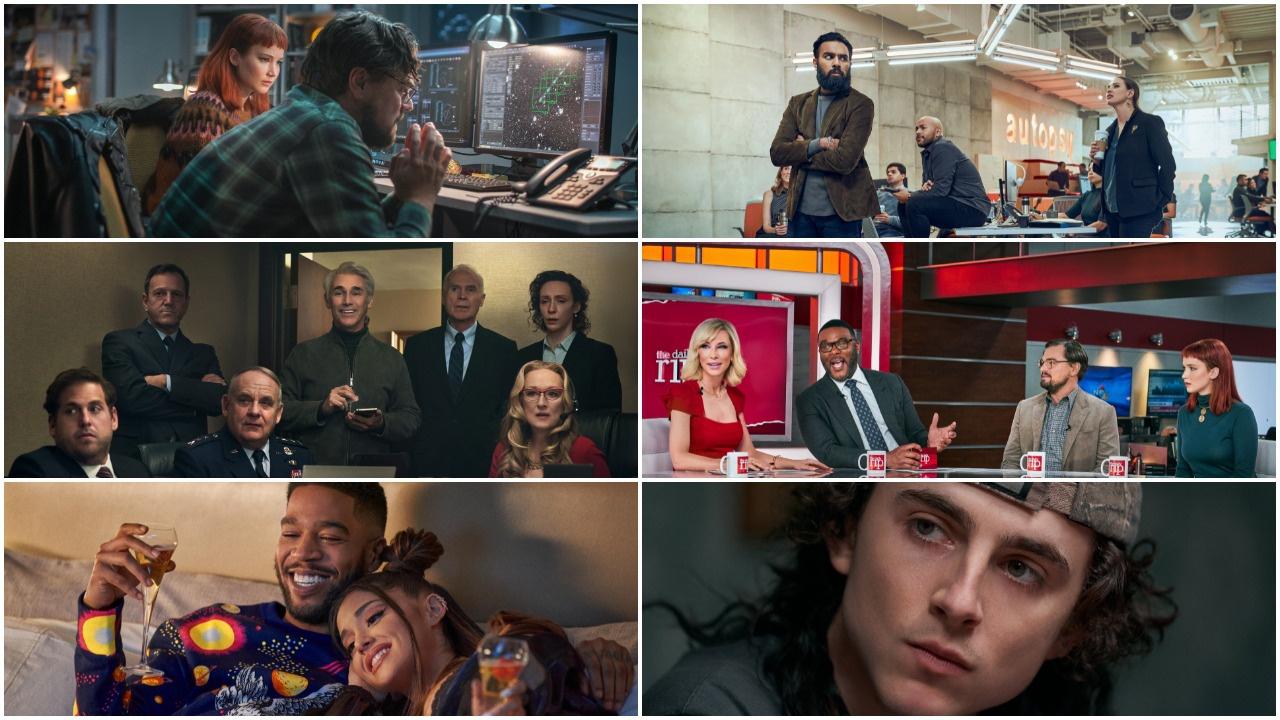 After a first trailer for their unofficial “tentpole/blockbuster” offering for late 2021 (Red Notice), Netflix just dropped a trailer for their unofficial Oscar mega-movie. The big hook for Don’t Look Up is, of course, the bonkers-sized cast. Not only does it star Leonardo DiCaprio and Jennifer Lawrence , it has a cast that includes Meryl Streep, Johah Hill, Timothée Chalamet, Cate Blanchett, Himesh Patel, Ron Perlman, Michael Chiklis, Kid Cudi and Ariana Grande.