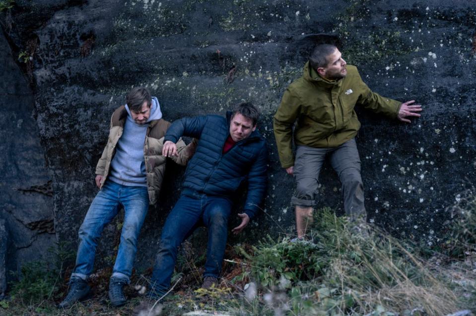 The men are at a bachelor party and then after a long hike return to their car. Someone starts shooting at them from a distance, winging one of them in the arm, but soon they realize it wasn’t a hunting accident, and someone is actually coming after them.