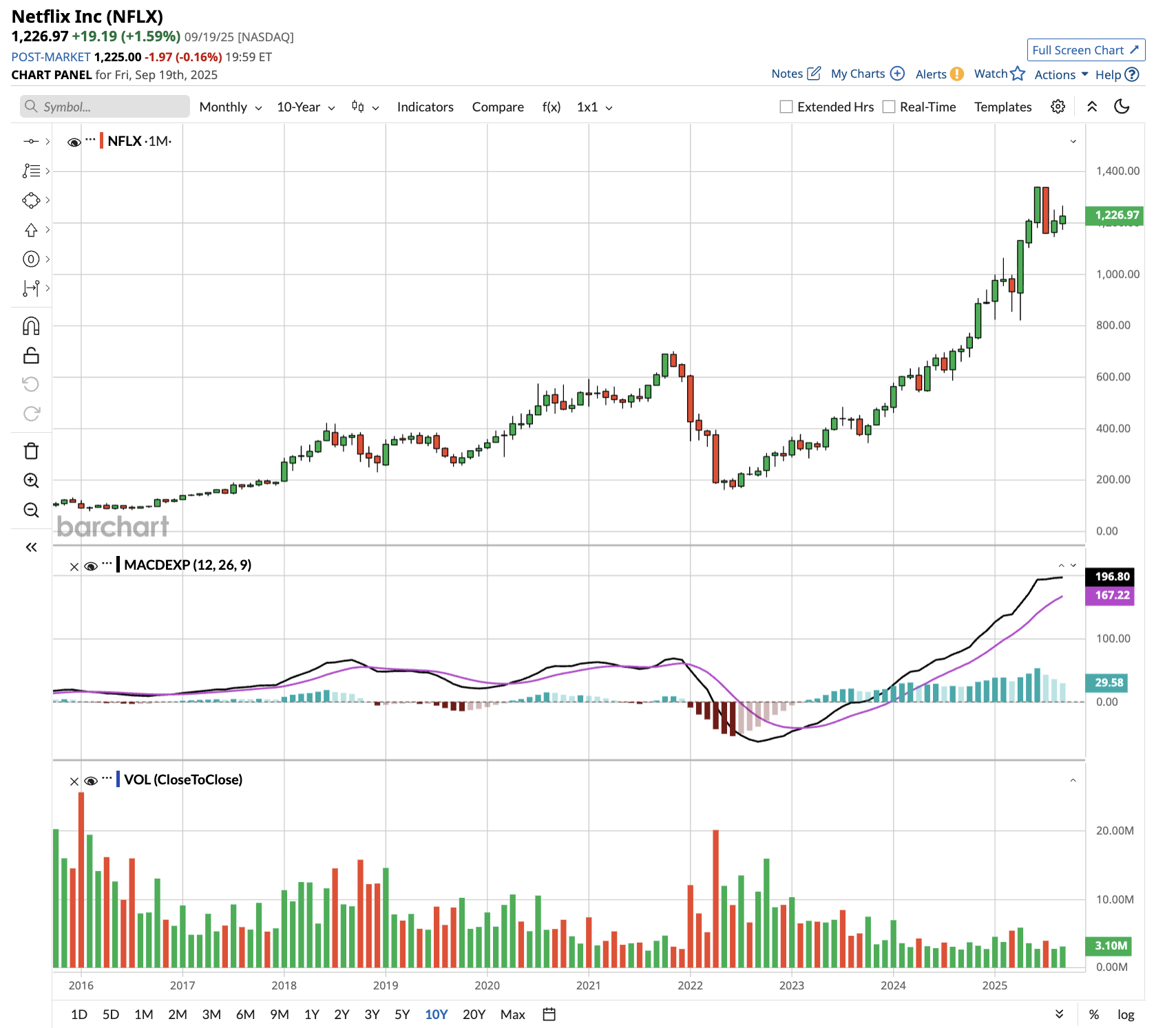 Although Netflix (NFLX) stock has risen 40% in 2025, Wall Street remains bullish on the streaming giant's prospects. Last week, Loop Capital upgraded NFLX stock from "Hold" to “Buy,” raising its price target by $200 to $1,350, implying an upside of 12.5%.