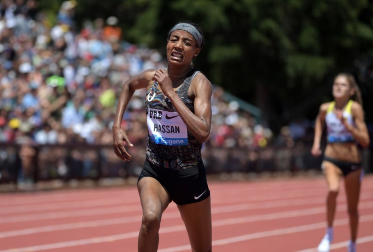 It was a fitting performance in an event named the "Brave like Gabe" Mile. There was a tribute to Grunewald on the big screens at the stadium before the race and once it was underway, Hassan, who moved to the Netherlands after leaving Ethiopia as a refugee when she was 15, was always in control.