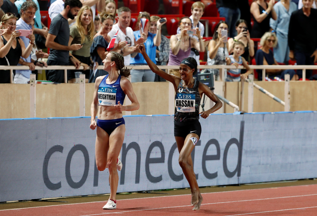 MONACO (Reuters) - Sifan Hassan of the Netherlands broke the 23-year-old women’s mile world record on Friday when she clocked four minutes 12.33 seconds in a race dedicated to former American runner Gabe Grunewald, who died from cancer last month at the age of 32.