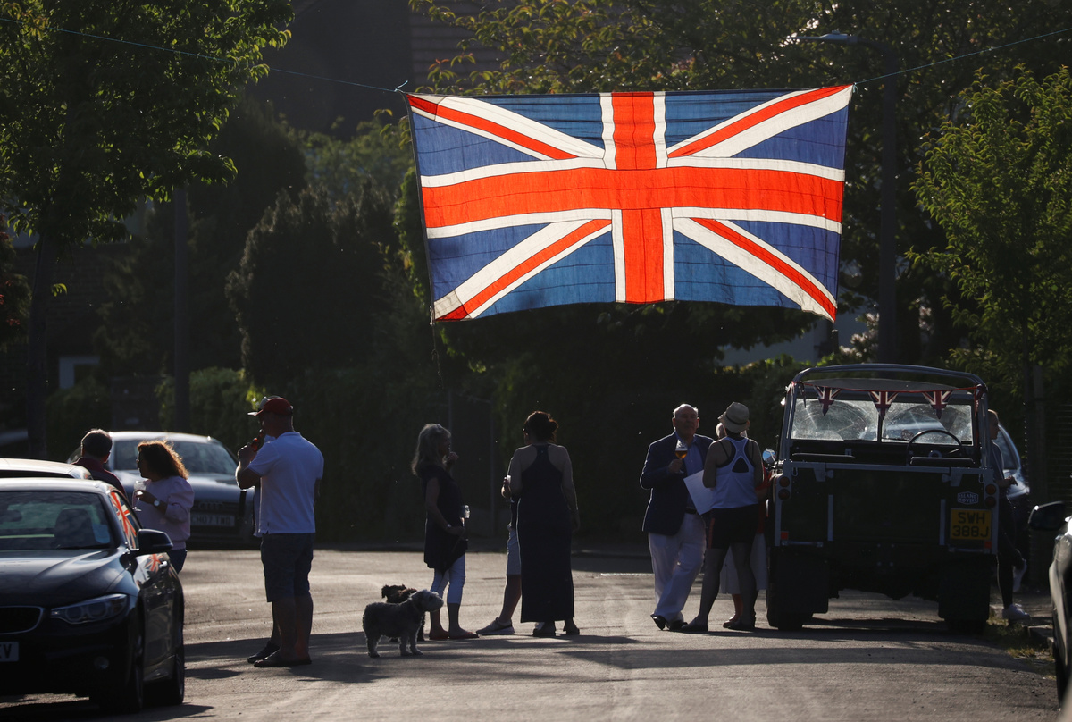 But flags and banners still fluttered across Britain, and people stuck at home due to the lockdown enjoyed a day of special television and radio programmes.