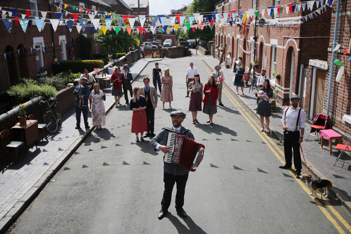Households across Britain evoked the spirit of the 1940s, some dressing in period costume and hosting tea parties despite the coronavirus lockdown.