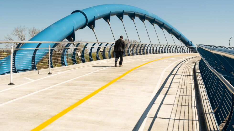 The $36 million bridge joins new crossings at 35th and 41st streets. The S-shaped, steel-arched 43rd Street span — painted in Chicago blue — is a twin of the one at 41st that opened in late 2018.