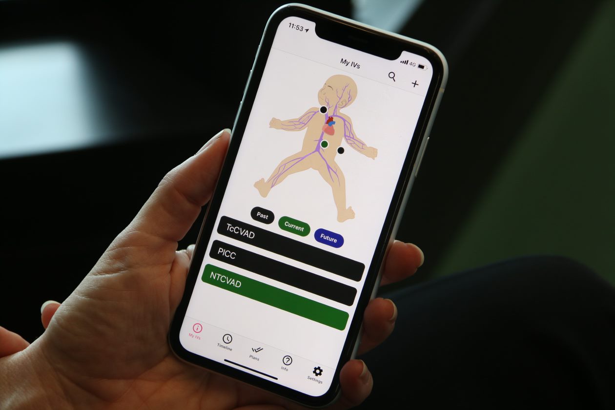 The app contains the child's IV history, how and when to change dressings, medical appointment reminders and advice about caring for the IV.
